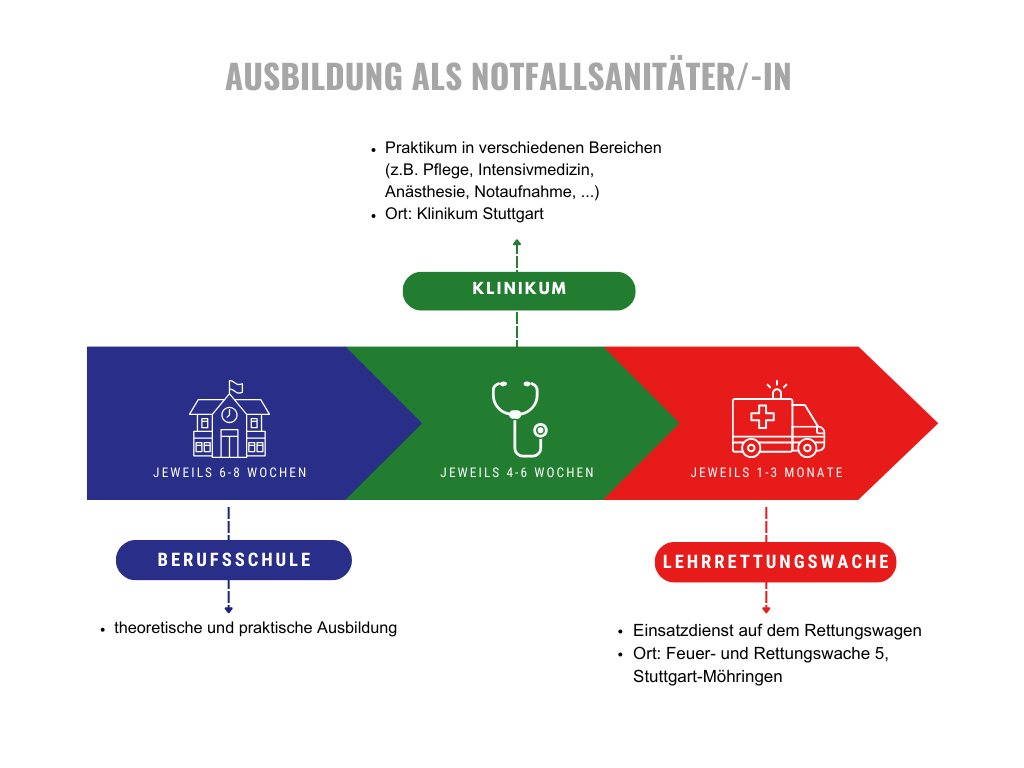 Die Feuerwehr Stuttgart ist als einzige Feuerwehr in Baden-Württemberg im medizinischen Rettungsdienst tätig und besetzt mehrere Rettungswagen. Jedes Jahr werden Auszubildende als Notfallsanitäter/-in eingestellt. Die dreijährige Ausbildung findet an den drei Lernorten Berufsschule, Krankenhaus und Lehrrettungswache (Feuer-und Rettungswache 5) statt.