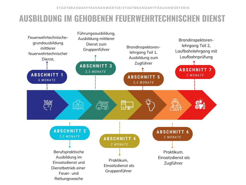 Wenn Sie in schwierigen und stressigen Situationen einen kühlen Kopf bewahren können und über großes Verantwortungsbewusstsein und Zuverlässigkeit verfügen, könnte die Laufbahnausbildung im gehobenen feuerwehrtechnischen Dienst genau das Richtige für Sie sein. Die Laufbahnausbildung qualifiziert Sie für die Funktion eines Gruppen‐ oder Zugführers und bereitet Sie auf die anspruchsvollen Aufgaben im gehobenen feuerwehrtechnischen Dienst vor.