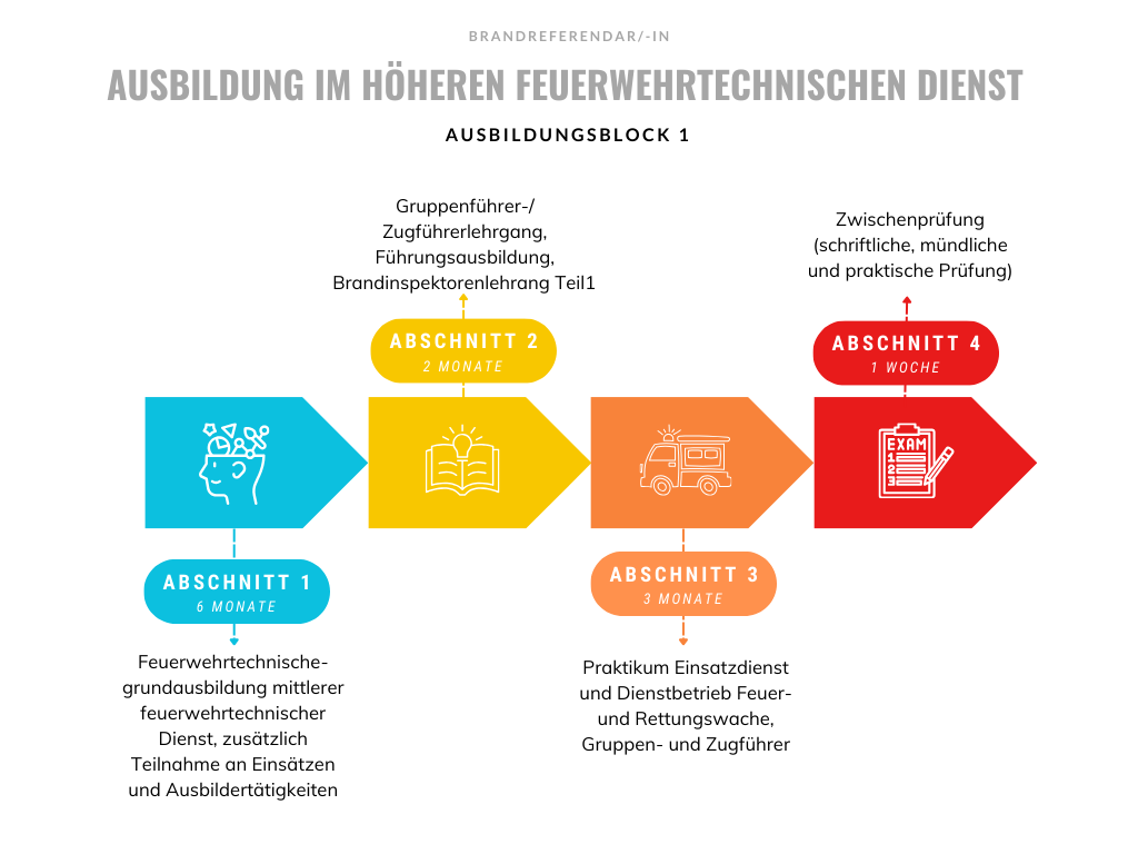 Sind Sie bereit für große Herausforderungen und verantwortungsvolle Aufgaben im Feuerwehrdienst? Als Brandreferendarin oder Brandreferendar werden sie zum Einsatzleiter ausgebildet und lernen Führungstätigkeiten z.B. als Leiter eines Fachbereichs oder einer Abteilung kennen. Mit starken Fähigkeiten in der Leitung von Teams und in der Lösung von komplexen Problemstellungen können Sie sich für die Ausbildung im höheren feuerwehrtechnischen Dienst entscheiden.