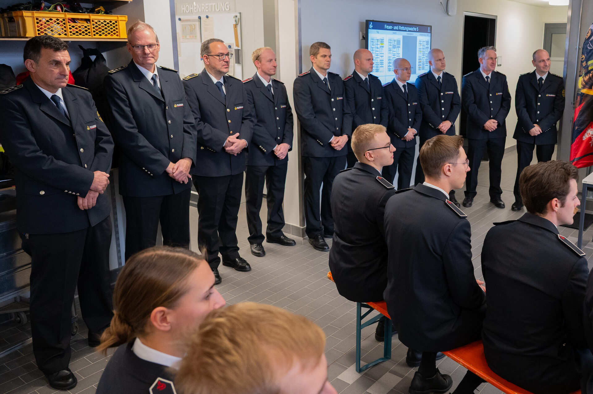 Anwesend waren dabei auch der Abteilungsleiter Verwaltung Herr Frauhammer, Kollegen und Kollgeginnen der Abteilung Verwaltung, die jeweiligen Dienststellenleiter oder Vertreter der Feuerwachen sowie die Ausbilder des Aus- & Fortbildungszentrums.